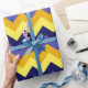 En papper omslagningsram med en söt, ombre mönster-design av chevroner i blått, gult och guld.