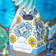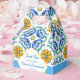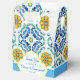 Blå gulten Majolica-plattorna personligen Medelhavets anpassningsbar namn föredrar presentlådor för bröllop, party, möhippa eller babydusch. Bridght vibrant färg är en fin accent för din speciella funktion.