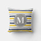 Blå Gult, stripe Mönster Monogram Kudde