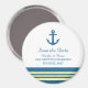 Elegant och klassisk Nautisk ankare Spara datum magneter med enkelt båtankare och en rad rand i mörkens marinblått och gult. Det här temat för sjöstranden sparar datumet och kan enkelt anpassas med dina uppgifter om bröllop. Om du vill ha fler anpassningsalternativ klickar du på knappen Anpassa.