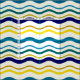vågigt linjer-design i blått och gult.