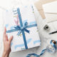 Blå gyllene akvarell bubblig och brunch bröllops- presentpapper
