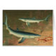 Blå hajar som äter fisk, gammal marin fauna hälsningskort