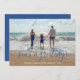 Ett smart tag på det traditionella helgdag ger ditt favoritbadfoto med Seas & Hälsning i ett handskrivet tropiskt blått skript. Anpassa med din familj namn och året.