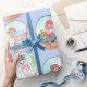 Blå helgdag av julsnöglob som omsluter papprare Perfekt som är papprare för att helgdagarna ska slå in presenter. Visar en annan snöglob, t.ex. en jultomte och en Julgran