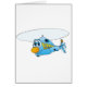 En vismisk blå tecknad helikopter som flyger över det vänliga himmel.