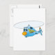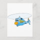 En vismisk blå tecknad helikopter som flyger över det vänliga himmel.