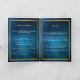 Ett 4-sidigt elegant-program. Ett mörk blått himlar som bakgrund, ett faux guld ram och plats för ditt foto på framsidan. Anpassa och lägg till namn, data och din text. Vit text.