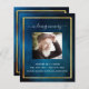 Ett tvåsidigt program för elegant. Ett mörk blått himlar som bakgrund, ett faux guld ram och utrymme för foto. Anpassa och lägg till namn, data och din text.