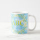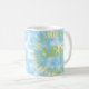 Solstråle stil teckning med monogram. Anpassningsbar kaffe koppar. Blå himmel mönster i bakgrunden. Redigera initialer för att göra det till en personlig, behålla det som ett 3 brev monogram eller gör det till ett 2 brev monogram. Gift idé för människor i alla åldrar som kärlek kaffe.