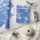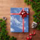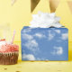 Blå himmel och vita moln som omsluter papprare presentpapper