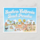 Ljuset och charmerande tecknad karta ger en viskös syn på Sydkalifornien - söta figurer njuter av det varma Kalifornien-utställningen i sol, Los Angeles, San Diego, Riverside, Handflatan Vår, Anaheim och Long Beach och dussintals andra, Anza Borrego och Joshua Träd parker samt städerna Tijuana, Tecate och Mexiko i gräns.