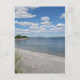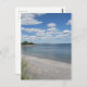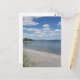 Ett tomt vykort som visar sjö och blått, grumligt himlar.