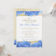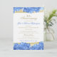 Eleganta guldremsor dekorerade med vackra blommande blå hortensior och fin stiltext 50-årsjubileums inbjudan. Anpassa den helt enkelt för att ändra text och typsnitt.