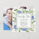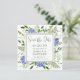 Det här fantastiska Blå Hortensia Foto Bröllop Spara datum-kortet är perfekt för att låta gästerna veta att de ska avsätta datumet för ditt kommande bröllop. Med sina akvarell flerfärgade blå hortensior, luftiga naturliga grönskor och ett vackert foto av er som par på baksidan är det idealiskt för att dela er glädje och spänning med vänner och familj. Alla kommer att vara glada att få fira med er på er bröllopsdag!
