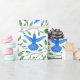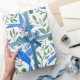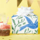 Cute Blue hummingbird with grönt löv sömlös mönster över vit bakgrund.