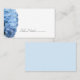 Blå hortensia-blommor tom plats / eskortkort. Texten för bordnumret är tryckt på vita kort med vacker, ljusblå blommor-design. Handskriv gästerna namn och använd för att dirigera folk till sina bord på en bröllopsmottagning. Denna vackra blå blomma är en del av designlinjen "Blue Heaven".