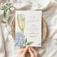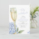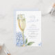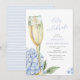 Denna vackra design har blå hydrangea blommor, ett guld champagneglas och din anpassade text. Använd mallformuläret för att lägga till din information.