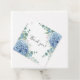 Blå hydrangeor på vit bakgrund vacker bröllopspresentetikett. En perfekt bröllopsdags servett för alla säsonger. De akvarellhydrangeorna är bara vackra. Klassisk & chic.