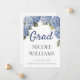 Mjuka blå hortensior inramar detta eleganta examensmeddelande med en tidlös, trädgårdsfest-charm som känns både personlig och polerad. Den rena vita bakgrunden låter examenstagerns namn ta centerplats — djärv, stolt och redo att fira. Skicka ut det och låt alla veta att detta milstolpsögonblick förtjänar att ihågkommas.