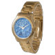 Initierad klocka för henne. Blå hydrangea blommor bakgrund med tre begynnelsebokstäver högst upp på urtavlan. Bokstäverna är vita skrivstil med en skuggeffekt för att sticka ut. Visas på ett guldarmband med många andra alternativ tillgängliga. Gör en vacker och unik present till den trädgårdsintresserade kvinnan.