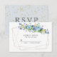 Modern, rustik, minimalist vattenfärgdesign med blå hortensia. En elegant tunn geometrisk guldram ger den minimalistiska strukturen för detta svarsbrev. Ett modernt arrangemang av blå hortensior pryder en av de diagonala guldlinjerna. Hortensiorna ser förtjusande ut tillsammans med de vilda blommornas slingor och bär som ger det en modern Boho-känsla. Baksidan av svarsbrevet är ljusblått med rustikala guldflingor. Detta svarsbrev är en del av samlingen Blå Hortensia. Den innehåller mallar för bröllopspapper som du kan använda för att skapa din bröllopsinbjudan. Du bör se en länk till den på denna sida. Om du inte kan se den eller behöver hjälp med en artikel, vänligen kontakta mig.
