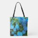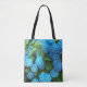 Ditt val av snyggt till påsen eller korsningspåsen och med övertryck som innehåller en fotobild av vackra, blå Hydrangea-blommor, även känd som Hortensia och Fransk Hydrangea. En underbar, blommigt design! Välj din tote-väska stil.