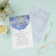 Budget bröllop-ceremonin, inbjudan till repetitionsmiddag med blåblommor. En stor, realistisk, ljusblå vattenfri blomma dekorerar den översta av prisvärda pappra blommor. Ta med namn från bruden och trimningen. Anpassa enkelt linje efter linje med kyrkinfo och middagsinfo under. Svart textkombination av utskrivet teckensnitt och skriptteckensnitt stilar över vitt pappert. Ändra storleka efter behov. En lätt blommigt dekorerar baksidan av den pappra. Blommigtens utformning matchar samlingen Blue Måne bröllop.