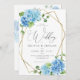 Blå Hydrangea Guld QR-kod allt i en Bröllop Inbjudningar