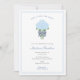 Hon knyter knuten! Hoppa på bågtrenden men håll den elegant med denna blå hydrangea och blå/vit båge bröllopsinbjudan design.