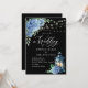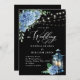 Blå Hydrangea Lantern Black Background Bröllop Inbjudningar
