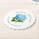 En detalj i roligt party som skräddarsydd papper underlägg kan vara en klassisk blå blommar för brandgator och brudens namn.