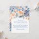 Den fantastiska eleganten är en bröllopsinbjudan till bröllop. Blommigt bouquet från blå vattenskärtor och persikofärgad ro - ser pastel och dammig ut och kombinerar mjuk blått med de muterade peachyskuggorna.