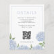 Blå Hydrangea Ram-detalj QR-kod Tilläggskort
