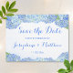 Dessa kort för att spara datumet har vattenfärgshydrangeablommor. De är en del av en samling som inkluderar ett komplett utbud av matchande bröllopsinbjudningar och brevpapper, såsom svarsbrev, informationskort, adressetiketter, klistermärken, program och mycket mer. Besök samlingssidorna i vår butik för att se hela utbudet av föremål som du kan anpassa för ditt bröllop.