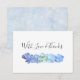 Små blommiga tacksamhetskort med ljusblå hydrangeablommor. "Med kärlek och tack" är texten på framsidan, eller anpassa den. Baksidan innehåller en bakgrundsbild av blekblå blommor.