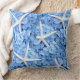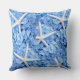 Blått blommigt vid kusttemat dekorativ kudde med blå vattenområden och vit stjärnfisk.