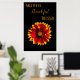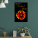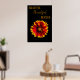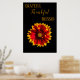 En roligt som innehåller ett närliggande foto av en blomma i blomning på en svart bakgrund.
