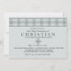 Den mjuka blå bakgrunden har en övre gräns av ett intrikat band i kor som trimmas i mörk teal. Lämpligt för alla religiösor firande.