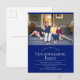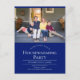 Blå inbjudningskort för inflyttningsfest med foto