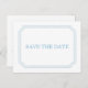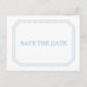Enkel och elegant inringad biljett Spara datum vykort med en geometrisk cirkelkant i blått. Denna snygga och moderna bröllopsdesign för att spara datum är perfekt för att tillkännage ditt enkla och sofistikerade bröllop. Lätt att anpassa, lägg bara till dina bröllopsdetaljer i de tillgängliga textfälten. Klicka på "Anpassa" för att hitta fler anpassningsalternativ.