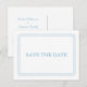 Enkel och elegant spar-datum vykort med rundade hörn och en geometrisk cirkelkant i blått. Denna snygga och moderna design för bröllop är perfekt för att tillkännage ett enkelt och sofistikerat bröllop. Lätt att anpassa, lägg bara till din bröllopsinformation i de tillgängliga textfälten. Klicka på "Anpassa" för att hitta fler anpassningsalternativ.