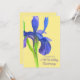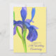 En vacker iris 25-års bröllopsdag inbjudan dekorerad med en handmålad akvarell iris blomma i eleganta nyanser av kunglig blå och lila på en mjuk gul bakgrund. Iris är en blomma som representerar 25-års bröllopsdag. I blommornas språk representerar iris tro, mod och visdom.