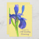 En vacker iris 25-års bröllopsjubileum inbjudan dekorerad med en handmålad akvarell iris blomma i eleganta nyanser av kunglig blå och lila på en mjuk gul bakgrund. Iris är en blomma som representerar 25-års bröllopsjubileum. I blommornas språk representerar iris tro, mod och visdom.