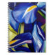 Blå iris original konst vattenfärg blommor anteckningsbok med spiral