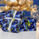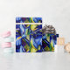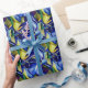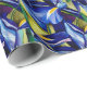 med originalmönster från ursprungliga vattenfärgsbilder av detaljerade, ljusblå iris-blommor i gröntens bakgrund av Sacha Grossel. Den här utförliga botaniska inspirerade konsdesignen visar ett nära fokus, makrodesign i coola färg av blå blommigt, grönt med gultens högdagrar.