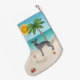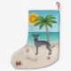 Blå italiensk greyhound vid Tropical Summer Beach Liten Julstrumpa