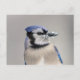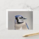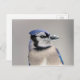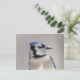 Blå jay med snö på hans bak vykort