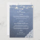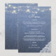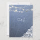 Blå jeans, spets, strängljus bröllopsmeny. Fira ditt bröllop på mottagningen med stil och sötma med denna falska jeanskmenu. Anpassa med dina förrättsval.