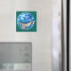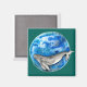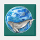Ursprunglig vattenfärgsmålning av Sandra Gale, med en fuktig val som simmar framför ett blått vattengjord som representerar jorden. Perfekt för valvakare, dykare, naturvårdare och valar i kärlek.